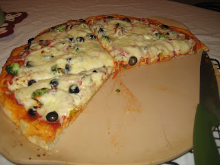 This week I pushed away my fears of killing the yeast and I made homemade pizza for the first time. My husband LOVED it and asked me if I even made the crust. That made my day!! My incredible sister who can cook circles around me, gave me the idea to add spices to the crust dough which makes the crust SO much more tasty! This is a wonderful, inexpensive and healthy alternative to buying pizza…it even tastes much better. Toppings on this pizza included pepperoni, pineapple, red onion, banana peppers, black olives, broccoli and mozzerella cheese. Mega yum for not-so-mega price!!