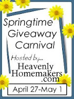 Click on over to Heavenly Homemaker’s Springtime Giveaway Carnival to enter more giveaways!!! Have fun!!!