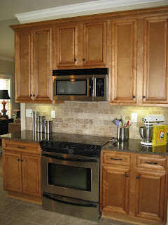 what a nice kitchen! I love the backsplash, its all very streamlined yet cozy! Thanks for sharing!