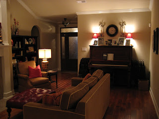 Beautiful room! Very warm. I LOVE the piano! Thanks for sharing!
