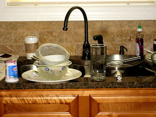We never have undone dishes! I have NO idea where this photo was taken…or how it even got in this post???? Those poor people must live in such a pig pen! I would NEVER let my house look like that! We will no further discuss the vast expanse of (not) empty countertops on either side of this picture…and my sheer embarrassment at showing what the kitchen REALLY looked like! Eek! This never happens at my house! Nope, not me!
