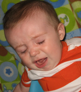 The "mad" picture cracks me up! He definitely is cute even when he's upset and crying! 🙂