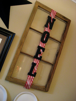 After I decorated the chandelier with candy canes, this window (that I dug out of the trash, frugal, right?) looked quite lonely and forlorn.